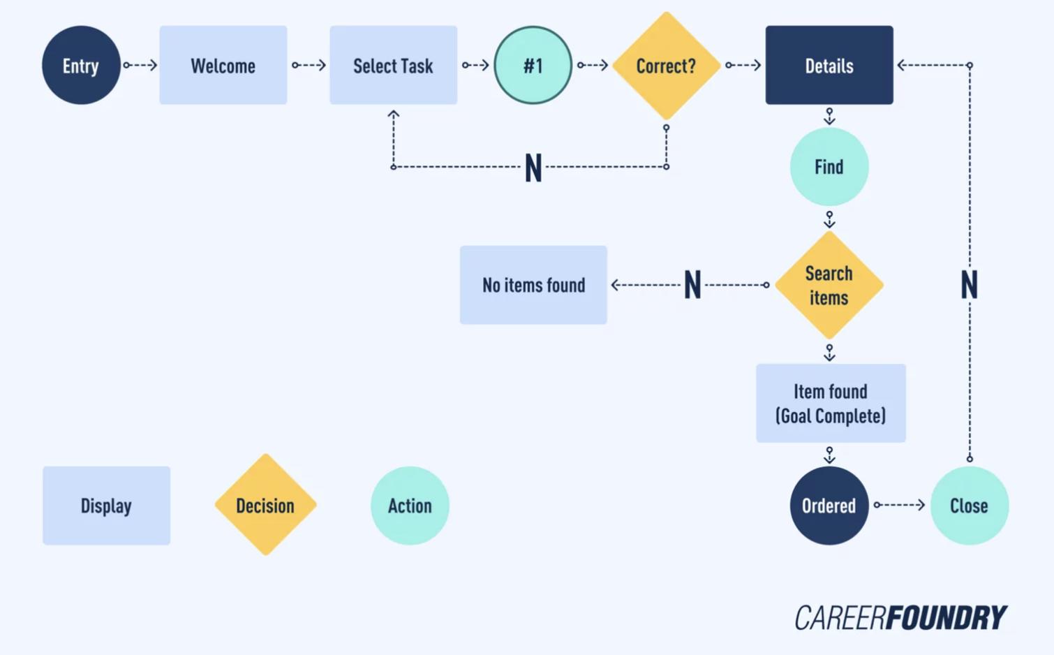 - 판단(Decision): 사용자가 행동 후 결과가 분기되는 경우
