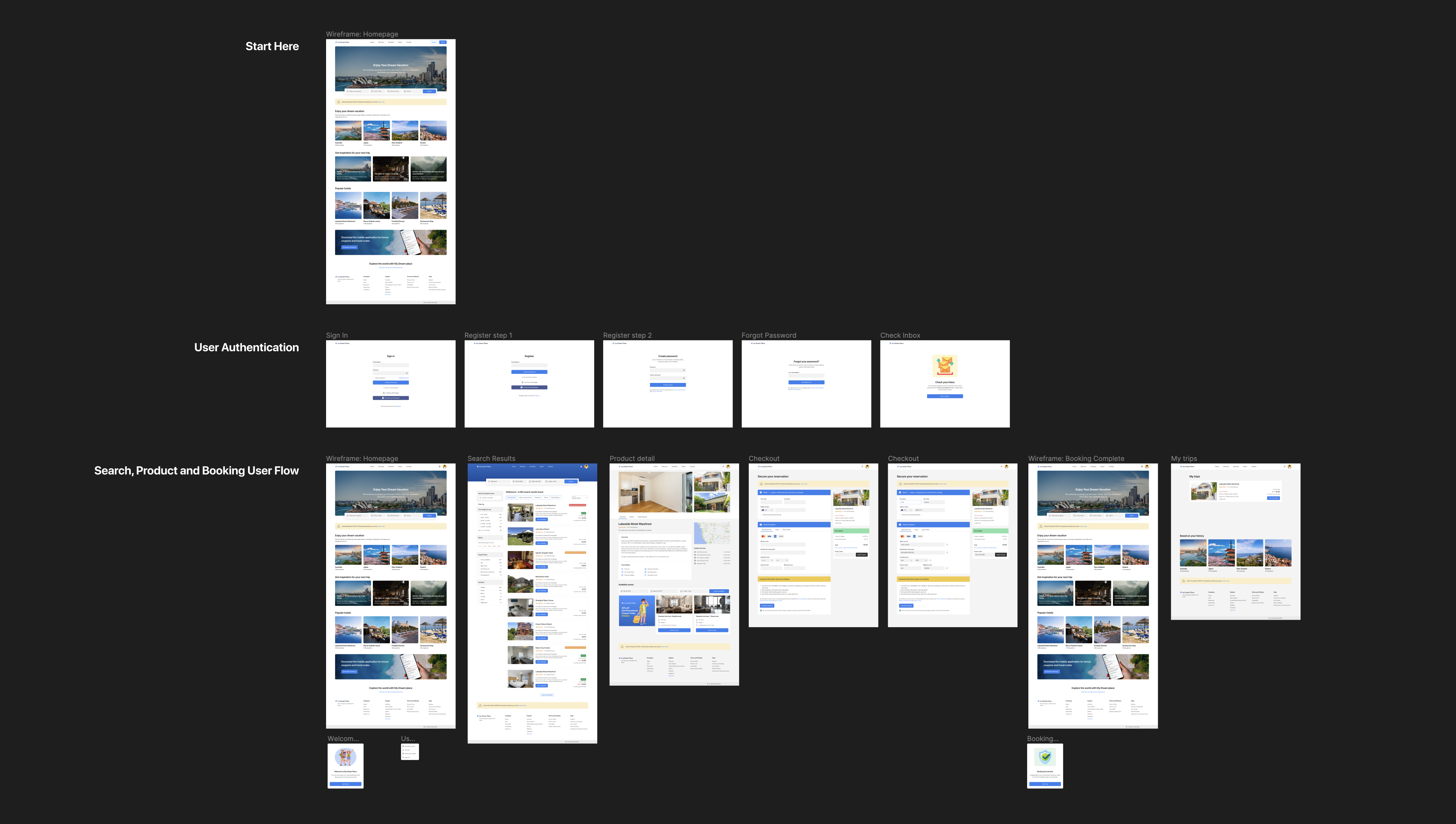 이렇게, 기획단에서 작성한다고 알려진 두 문서에 대해 공부하다보니 내가 피그마에 설계하는 그림과는 같으면서도 다른점이 느껴졌다. 일단 화면 흐름도가 좌에서 우로 흘러가며 유저의 터치 포인트를 표현한다는 점에서 일부 힌트를 얻었다. 화면 나열은 좌에서 우가 적절하다.