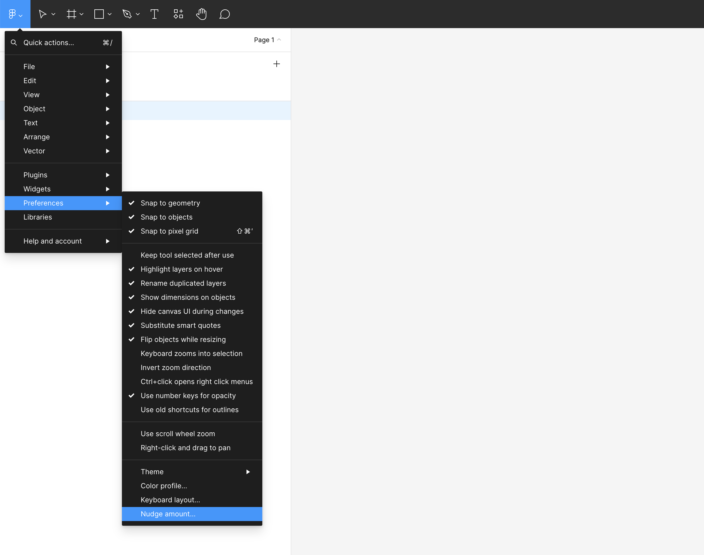 - 'Preferences' 메뉴에서 'Nudge Amount' 옵션을 선택합니다.