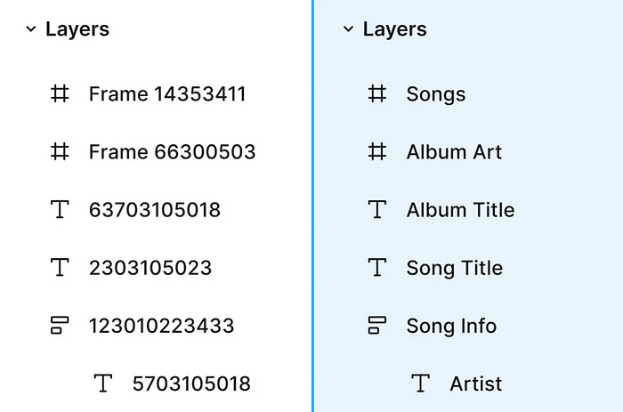 정리와 명확성을 향상시키기 위해 Figma에는 이제 자동 레이어 이름 바꾸기 기능이 포함되어 있습니다. 이 기능은 AI를 사용하여 디자인 내의 콘텐츠와 컨텍스트를 기반으로 레이어 이름을 바꿉니다. 수동으로 이름을 바꿀 필요가 없으므로 특히 복잡한 프로젝트에서 파일이 깔끔하며 탐색이 쉬워질것입니다.