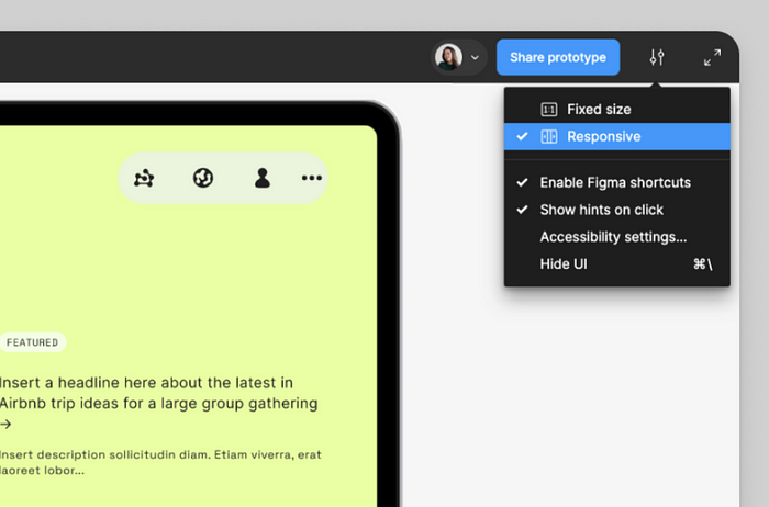 피그마는 프로토타이핑 기능을 한층 더 강화했습니다. 마이크로 인터랙션 및 고급 애니메이션 효과를 통해 더 인터랙티브하고 현실적인 프로토타입을 생성할 수 있습니다. 향상된 장치 미리보기 옵션을 통해 다양한 장치와 화면 크기에서 프로토타입을 테스트할 수 있습니다. 조건부 로직 지원으로 복잡한 사용자 흐름을 정확하게 시뮬레이션할 수 있습니다.