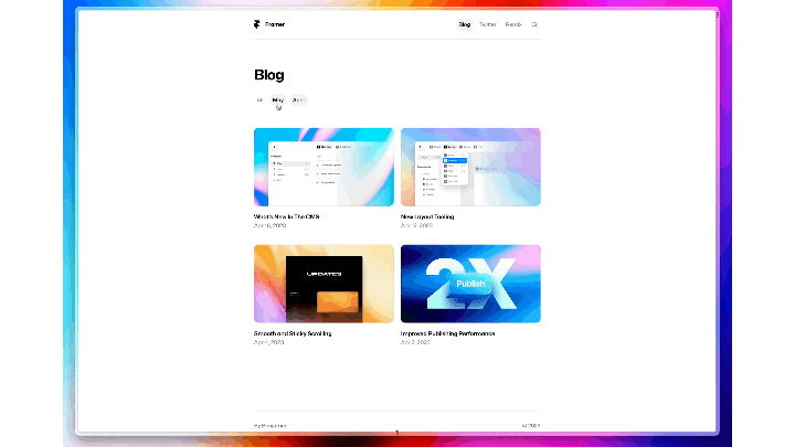 프레이머(Framer) CMS의 강력한 필터 기능을 활용하면 콘텐츠를 손쉽게 관리하고 사용자가 원하는 방식으로 콘텐츠를 탐색할 수 있는 인터페이스를 만들 수 있습니다. 이번 포스팅에서는 프레이머 CMS의 필터 기능을 활용해 블로그 게시물 목록을 날짜별로 구분하는 탭을 구성하는 방법을 단계별로 설명하겠습니다.