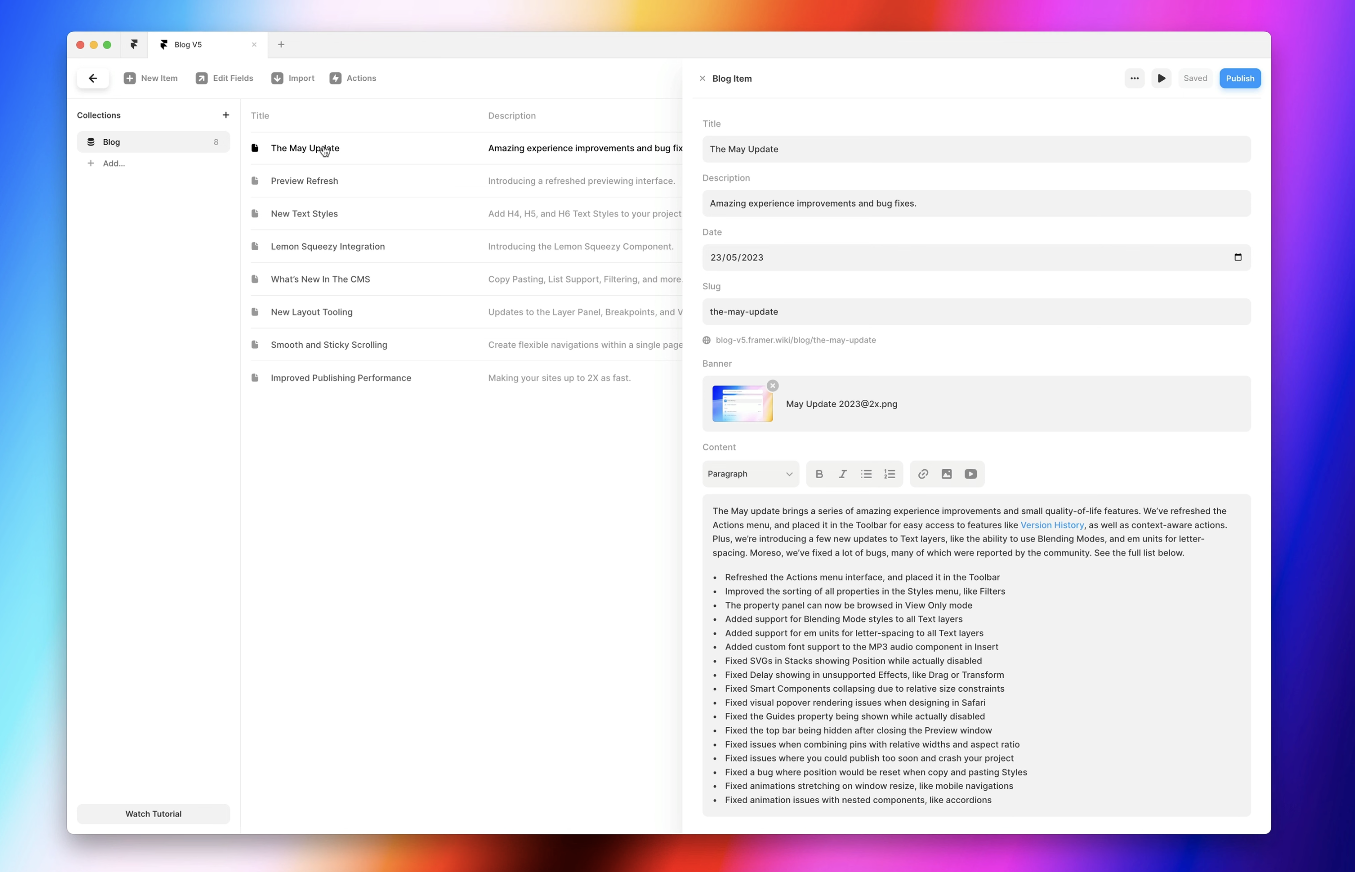 우선 프레이머 CMS에 블로그 게시물 컬렉션을 만들어야 합니다. 예를 들어, 4월과 5월에 게시된 블로그 포스트가 각각 4개씩 있다고 가정하겠습니다. 다음은 이를 기반으로 한 CMS 컬렉션을 만드는 방법입니다.