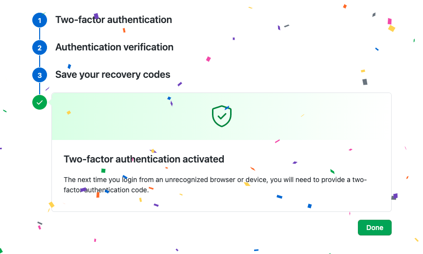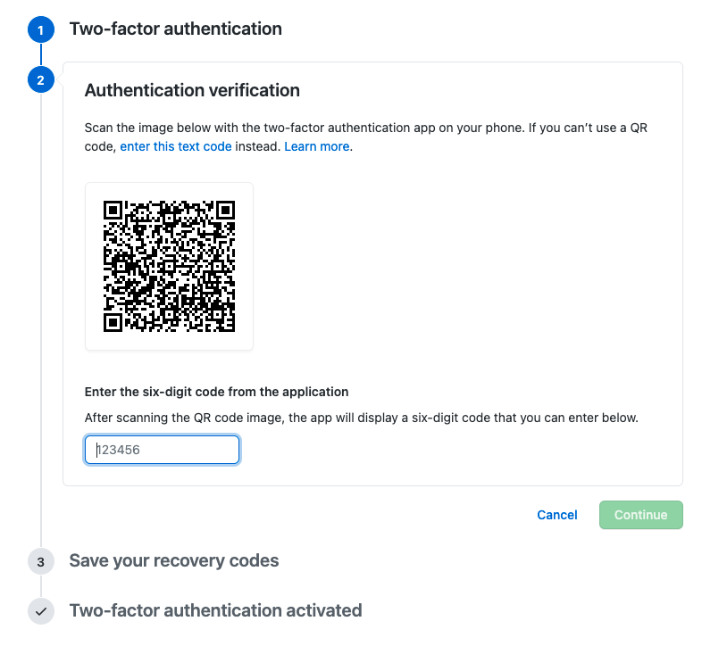- Enable Two-factor authentication 버튼 클릭