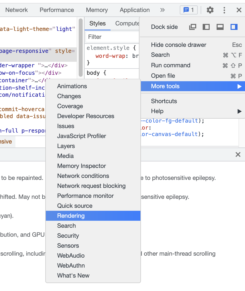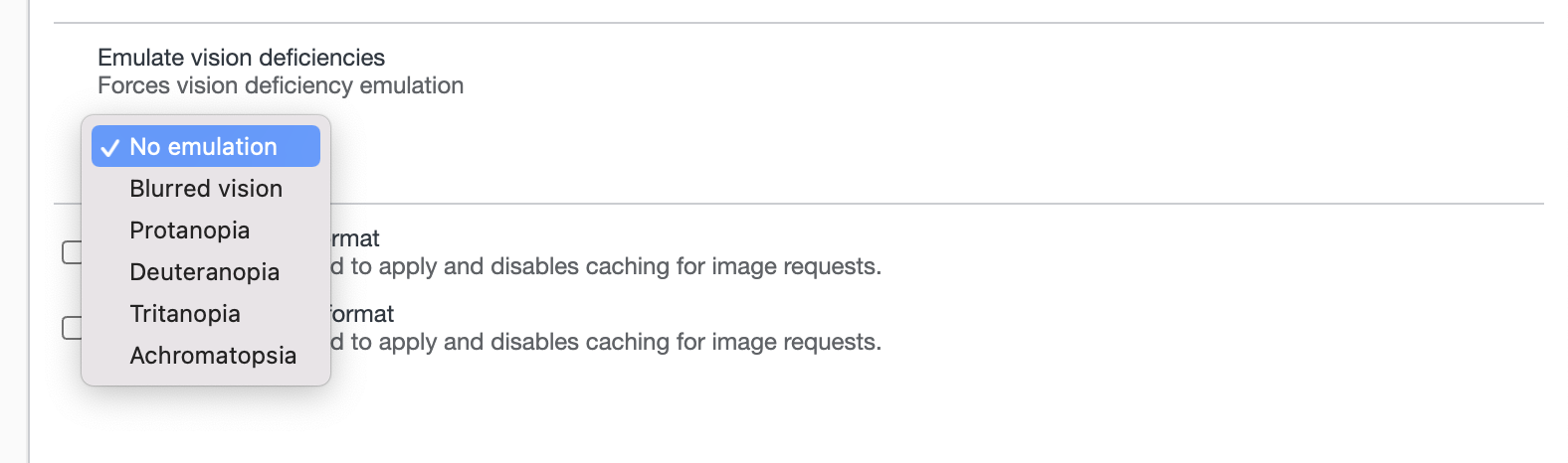 개발자 도구 (F12) 에서 More tools → Rendering 메뉴