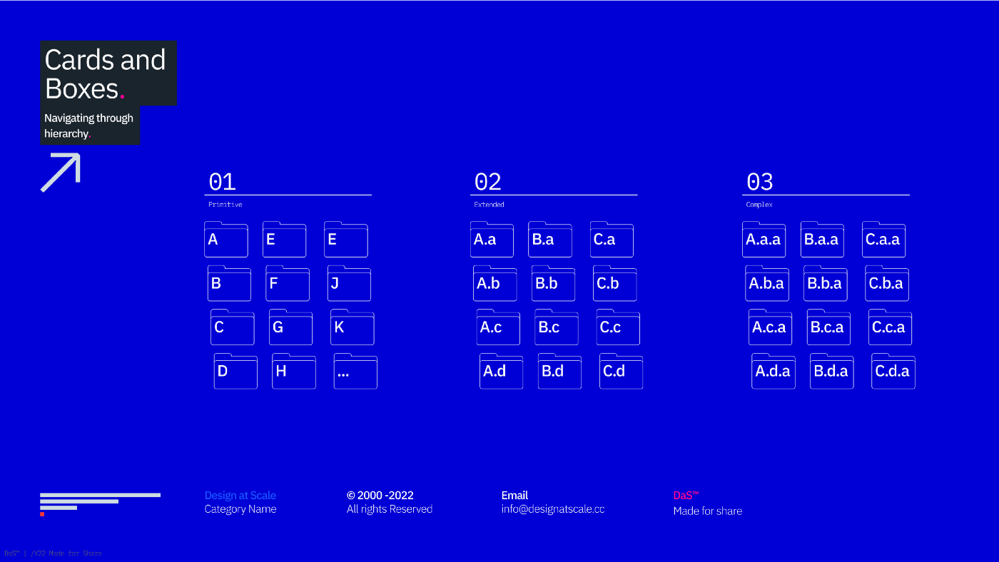카드와 상자의 물리적 경험은 디지털 파일링 시스템으로 진화합니다. 진보적 멘탈 모델을 통해 관찰자는 복잡한 데이터 구조를 탐색할 수 있습니다[참고: Array↗]. 이는 우리가 데이터를 보는 방식과 사용 가능한 데이터 소스에서 데이터나 정보를 얻는것에 영향을 미칩니다.